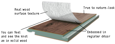 To laminate είναι υψηλής πυκνότητας μοριοσανίδα και αποτελείται από πολτοποιημένα ρινίσματα ξύλου. Το décor, το οποίο δίνει και το τελικό αποτέλεσμα που βλέπουμε στο δάπεδο, είναι ειδικά επεξεργασμένο χαρτί προστατευμένο από ένα εξωτερικό φιλμ. Το laminate είναι ένα ιδιαίτερα ανθεκτικό υλικό κατάλληλο για όλες τις χρήσεις. Είναι πολύ εύκολο και γρήγορο στην τοποθέτηση, γεγονός που το καθιστά ιδανικό για κατασκευές και ανακαινίσεις χώρων.